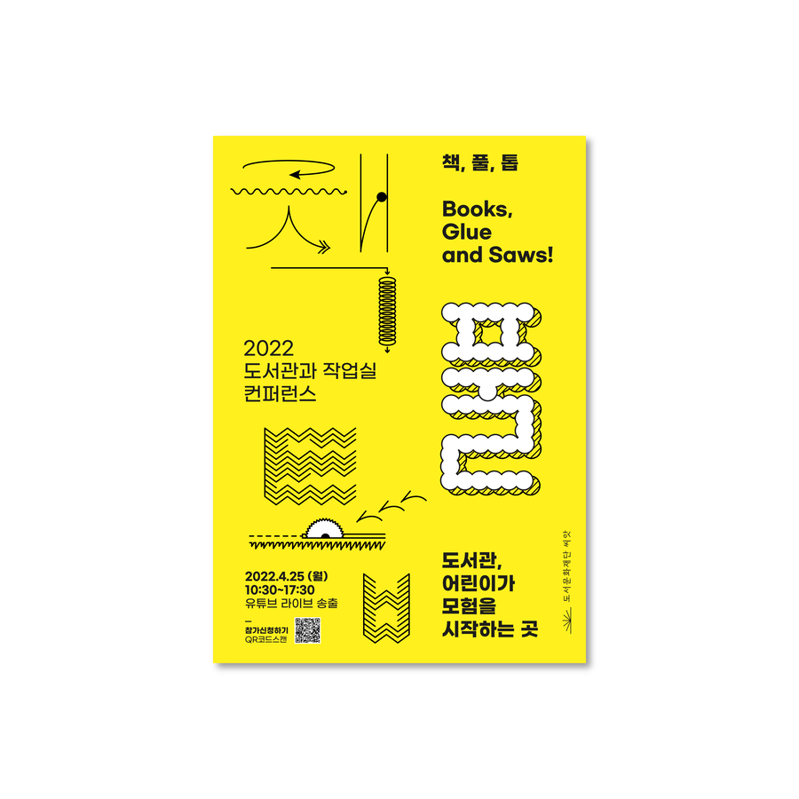 도서문화재단 씨앗의 도서관 속 어린이 작업실 <모야>. 어린이를 위한 작업 공간에 대한 인사이트 공유 및 새로운 모야 파트너를 모집하기 위한 행사로 유튜브 상으로 송출되었습니다. 책, 풀, 톱이 가진 특성을 선의 움직임들로 다양하게 표현해냈습니다. 메인 포스터와 프로그램 소개 외에 세션 포스터는 모야의 작은 손(어린이 작업자들)이 그린 그림 역시 활용하면 좋겠다는 제안 덕에 완성되었는데요, 더 유쾌한 분위기를 만들 수 있었던 멋진 제안이었습니다.